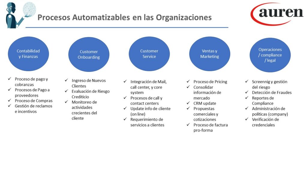 Si la respuesta es “SI”, recomendamos avanzar con una iniciativa de Robotic Process Automation (RPA), que hace posible automatizar un proceso en sólo 3 semanas (en la imagen 2 mostramos algunos Procesos que las “Buenas Prácticas” recomiendan como viables para automatizar).