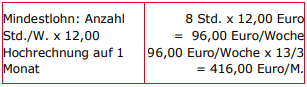 Folge: Da die Vergütung nur 254,00 Euro beträgt, muss sie ab 01.10.2022 um 166,00 Euro monatlich erhöht werden, um das MiLoG zu erfüllen.
