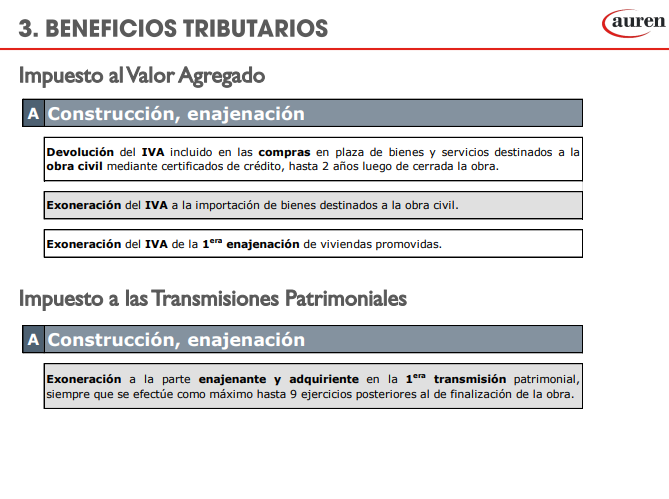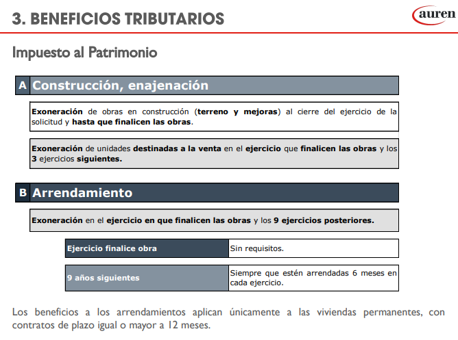 La Ley N° 18.795 promueve la construcción de Viviendas de Interés Social (VIS), mediante la concesión de beneficios tributarios tanto para el promotor del proyecto como para los compradores de las unidades VIS.